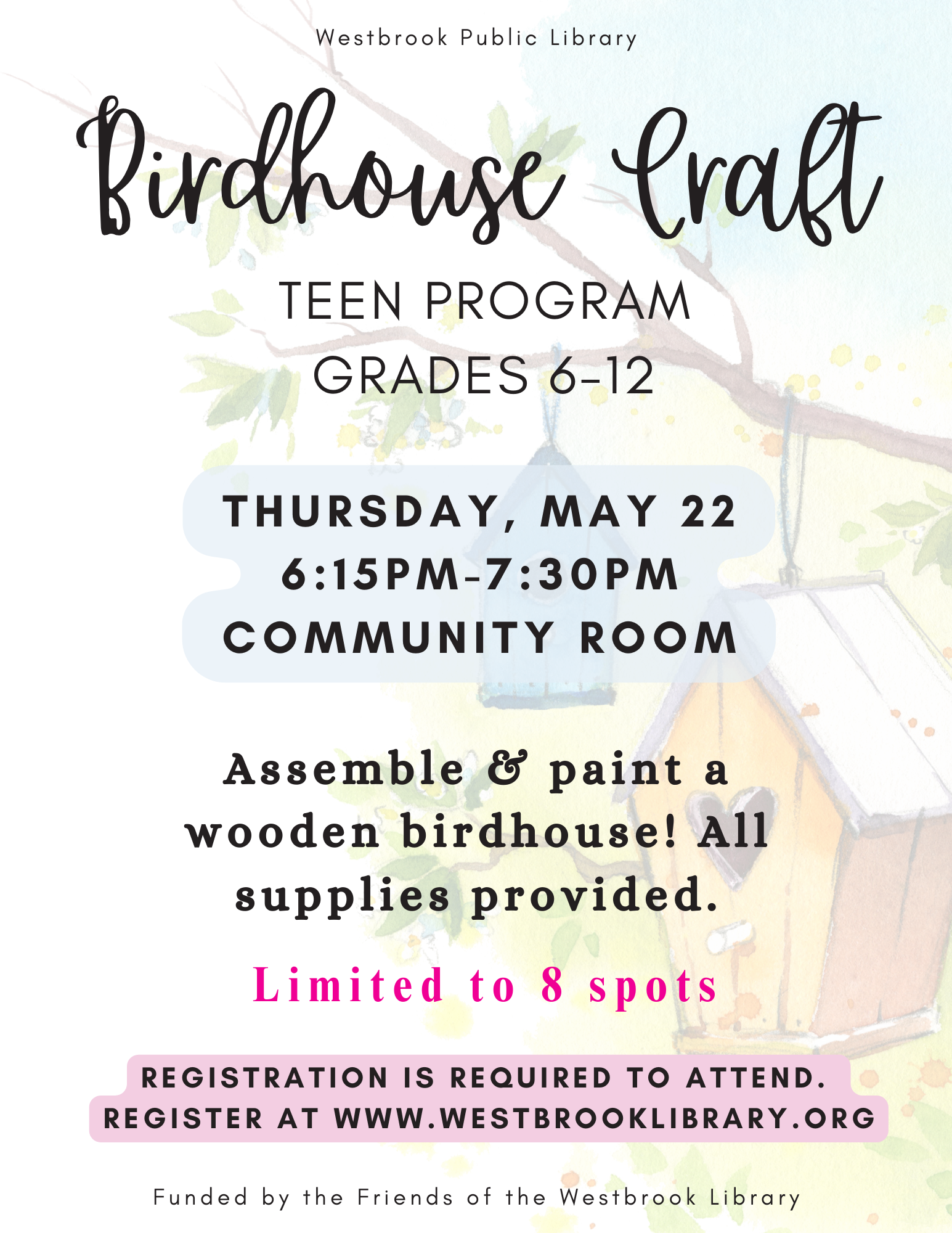 Assemble & paint a wooden birdhouse to keep! All supplies provided.