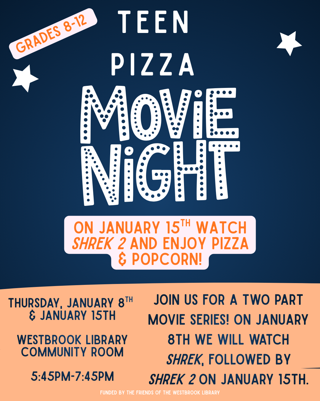 Part 2 of our January movie series! For students in grades 8-12. Pizza & refreshments will be provided. No registration required.