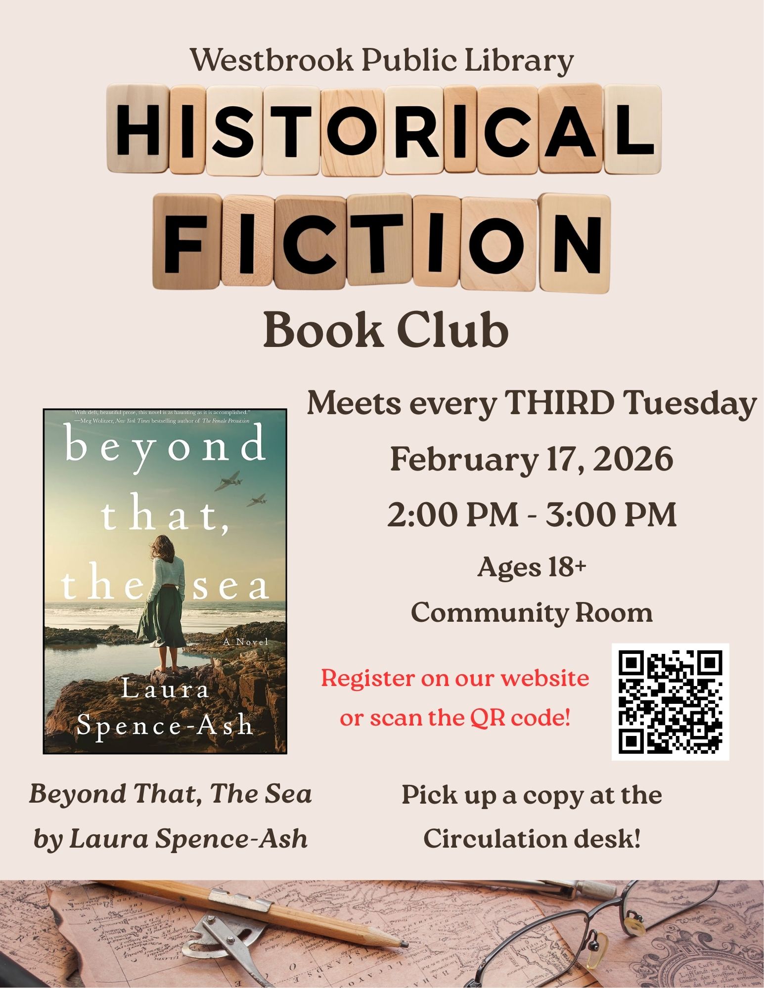 Join us for our Historical Fiction Book Club on Tuesday, February 17th from 2-3 PM as we read and discuss Beyond That, The Sea by Laura Spence-Ash, a moving novel...
