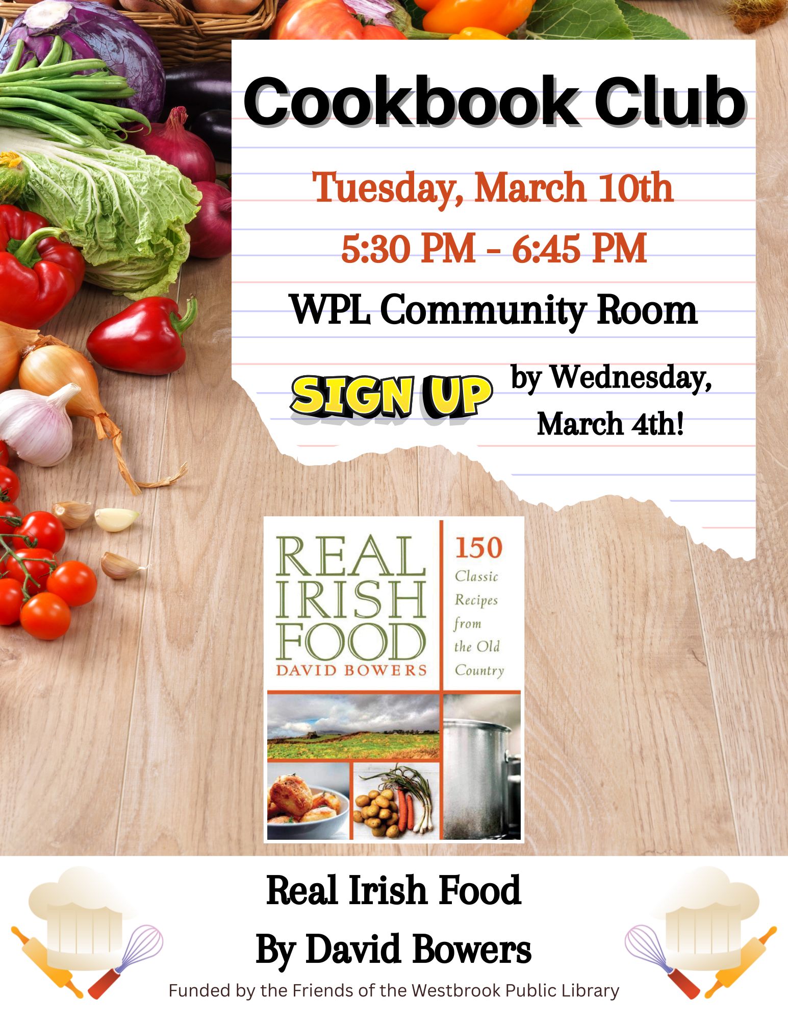Enjoy eating yummy dishes and making friends? Then Cookbook Club is the place for you! Attendees check out a copy of the cookbook of the month from the library. Then, they bring a dish of their choosing from that cookbook after signing up to sample with others. *Bring your own serving utensils* Our pick for...
